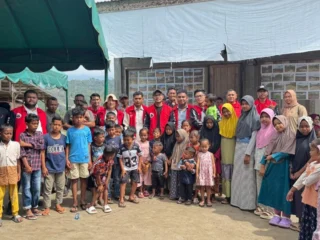 RAKYAT ACEH | CALANG – Personel Brimob Polda Aceh dari Kompi 4 Batalyon A Pelopor bersama relawan explore Aceh Jaya mendistribusikan bantuan untuk masyarakat pasca bencana alam ke Pidie Jaya dan Kota Lhokseumawe, pada Sabtu, 13 Desember 2025.