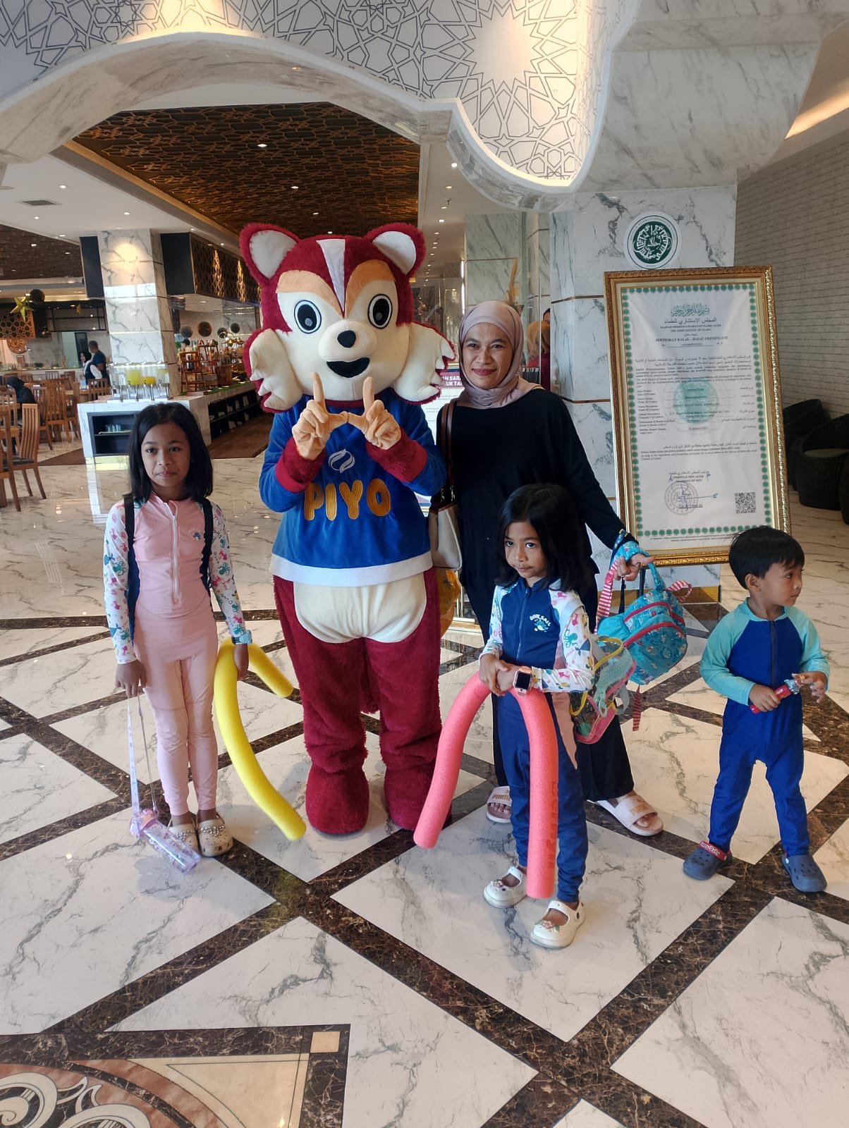 Menariknya, Hermes Palace Hotel Banda Aceh juga menghadirkan pengalaman unik bagi anak-anak. Setiap hari Minggu pukul 09.00 WIB, hadir maskot hotel yang menggemaskan bernama Piyo, boneka maskot kucing lucu dengan ciri khas baju birunya. Piyo dengan ceria menyapa para tamu dan bermain bersama anak-anak di area hotel, menciptakan suasana penuh tawa dan kebahagiaan.