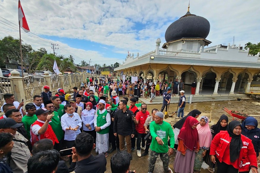 Rombongan tiba di kawasan Sawang sekitar pukul 10.15 WIB. Meski harus melewati jalan berlubang dan berdebu menuju wilayah pedalaman, JK tetap meninjau langsung kondisi gampong-gampong terdampak. Di sepanjang jalur tersebut, tenda-tenda pengungsian masih terlihat, meski sebagian besar sudah ditinggalkan karena warga mulai kembali ke rumah untuk membersihkan sisa material banjir.