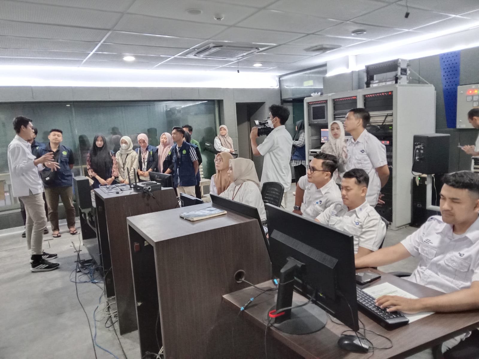 Para Mahasiswa KKN Unaya Kelompok 40 Sedang Mengikuti Penjelasan Dari Rais Subagia KPP IT TVRI Aceh Tentang Proses Produksi dan Penyiaran Acara Televisi di Studio LPP TVRI Aceh, Rabu, (4/3/2026).