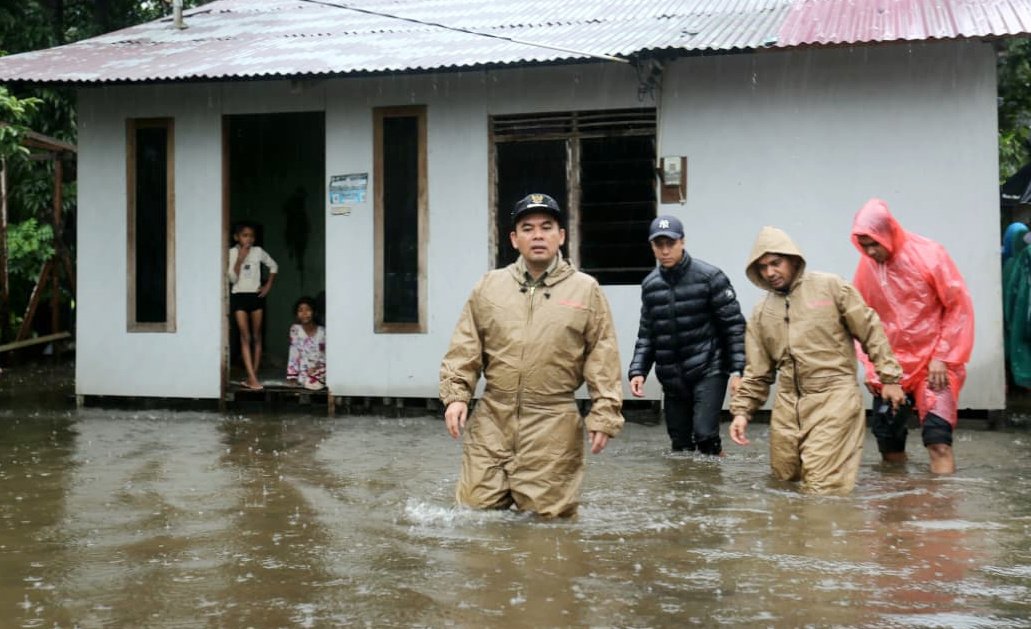 Tiba di Kota Langsa meninjau langsung kondisi di lapangan sekaligus menyalurkan bantuan secara simbolis kepada masyarakat terdampak di Gampong Keumuning, Kecamatan Langsa Lama.