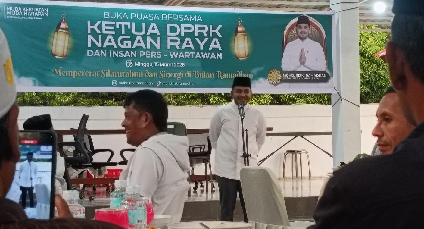 Rakyat Aceh|Suka Makmue – Ketua DPRK Nagan Raya Mohd Rizki Ramadhan, menggelar kegiatan Ifthar Jama’i atau buka puasa bersama dengan Insan Pers yang bertugas dalam wilayah Kabupaten setempat.
