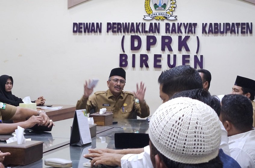 Penjabat Sekretaris Daerah (Pj Sekda) Bireuen, Hanafiah saat menerima perwakilan Gerakan Masyarakat Sipil di ruang Badan Musyawarah (Bamus) DPRK Bireuen, Selasa kemarin (10/3). (akhyar/rakyat aceh)RAKYAT ACEH | BIREUEN – Bantuan darurat sebesar Rp4 miliar dari Presiden untuk penanganan bencana di Kabupaten Bireuen hingga kini belum digunakan. Dana tersebut masih tersimpan di rekening kas daerah Pemerintah Kabupaten (Pemkab) Bireuen.