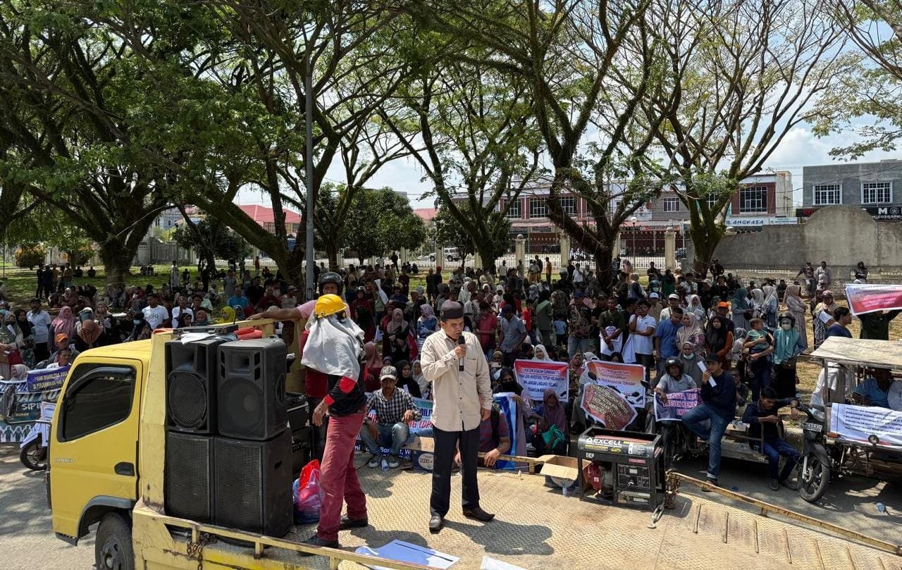 AKHYAR RIZKI RAKYAT ACEHRakyat Aceh | Bireuen – Ribuan warga Kabupaten Bireuen yang merupakan korban banjir dari berbagai kecamatan menggelar aksi unjuk rasa di halaman Kantor Bupati, Senin (6/4). Mereka menuntut kejelasan sekaligus pemenuhan hak-hak korban bencana yang dinilai masih terabaikan, meski banjir telah berlalu lebih dari empat bulan.