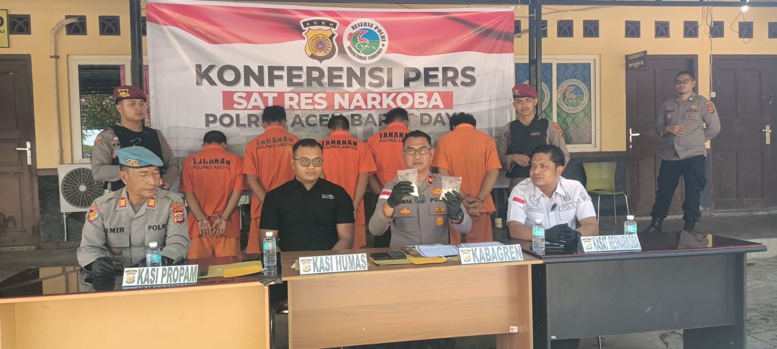 Hal tersebut terungkap dalam konferensi pers Kapolres Abdya, AKBP Agus Sulistianto melalui Kabagren Polres Abdya, Kompol Ismail bersama Kasat Resnarkoba, Iptu Hermansyah, Kasie Humas, IPDA Herman, Kasi Propam AKP Amir, yang berlangsung di Polres setempat, Rabu (15/4).