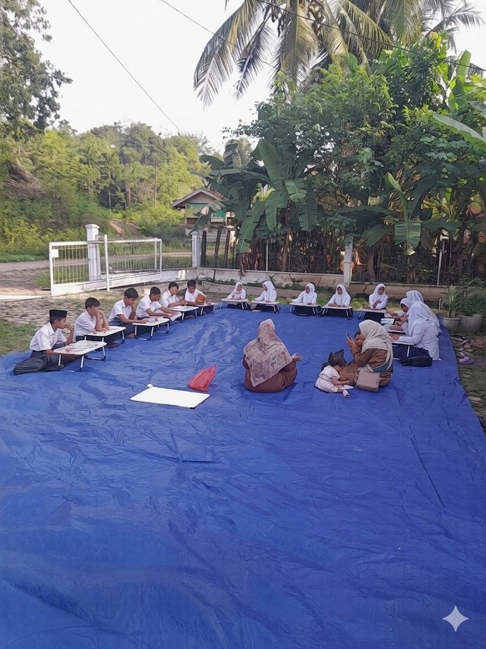 Sebelumnya, kegiatan belajar masih dapat dilakukan di bawah tenda darurat. Namun, setelah lima bulan berlalu, tenda-tenda tersebut mulai rusak dan tidak lagi layak digunakan akibat terjangan cuaca.