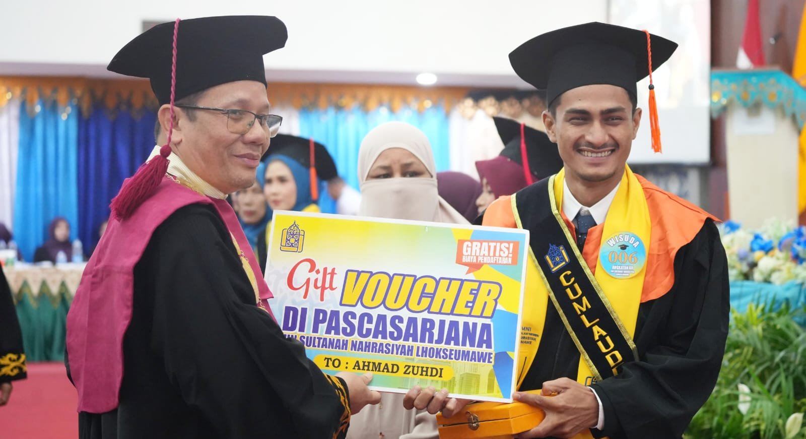 Rektor UIN Sultanah Nahrasiyah Lhokseumawe, Prof. Dr. Danial, menyebut capaian Akreditasi Unggul sebagai “kado istimewa” bagi para lulusan Angkatan XII.