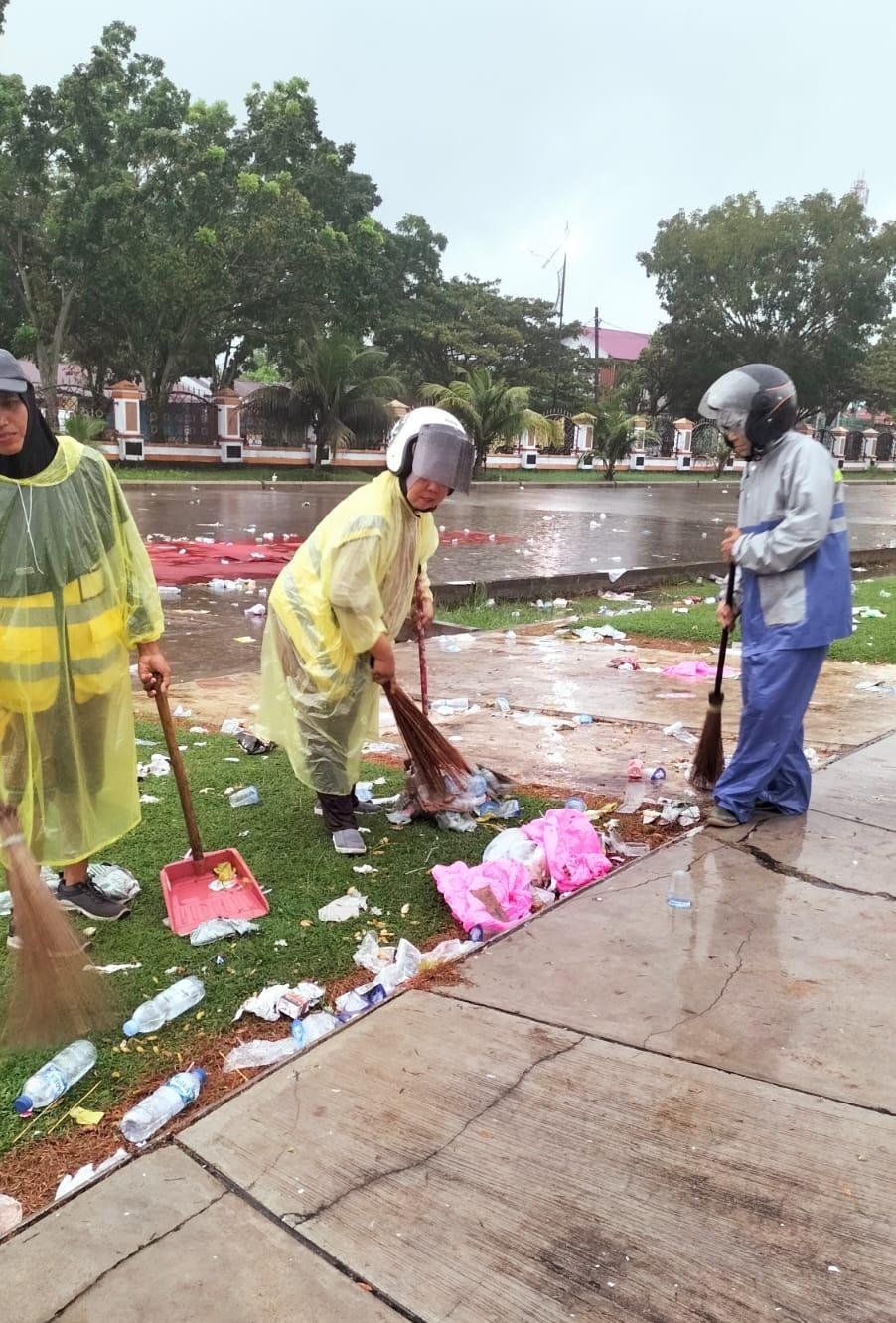 Usai Malam Tabligh Akbar, DLH Aceh Barat Bersihkan Sisa Sampah Berserakan